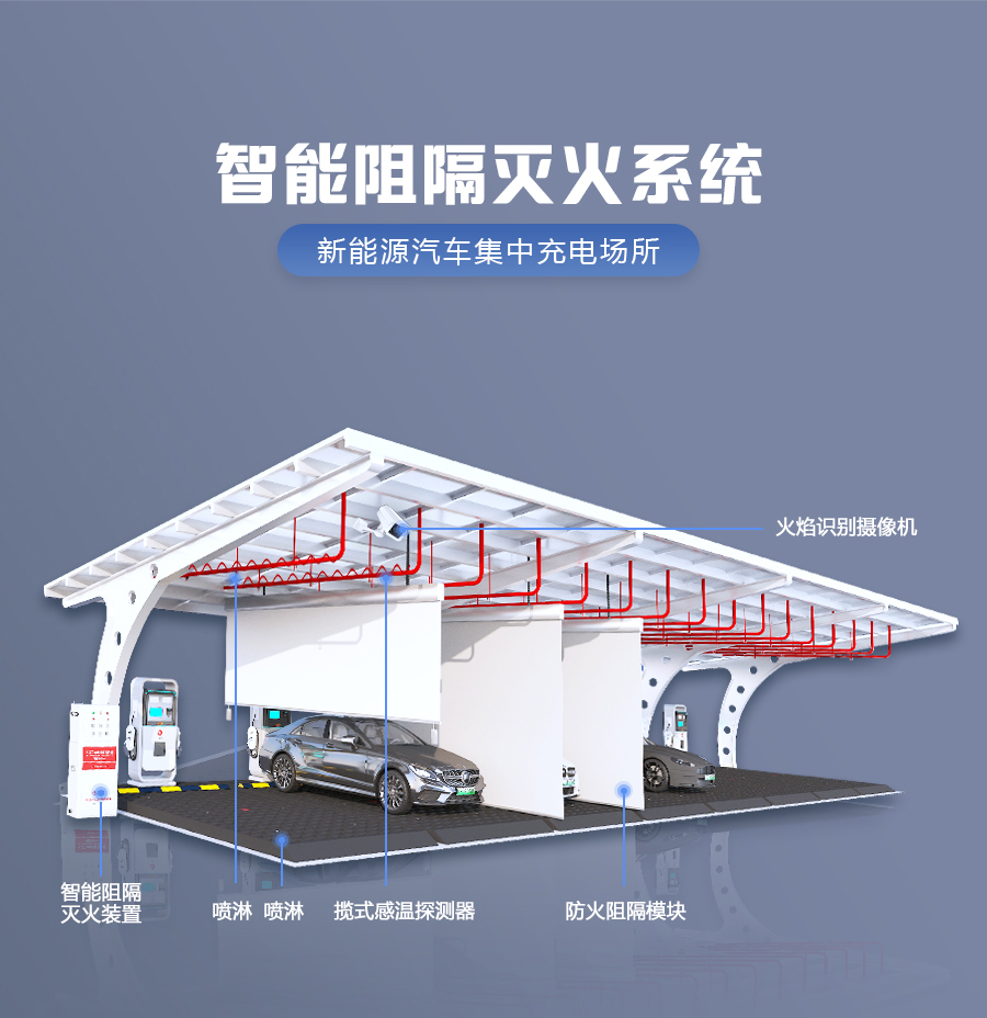 >新能源汽车集中充电场所智能阻隔灭火系统